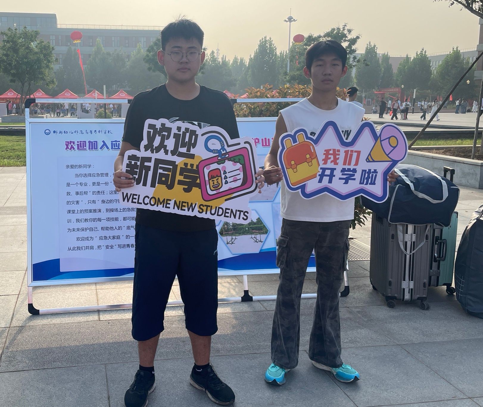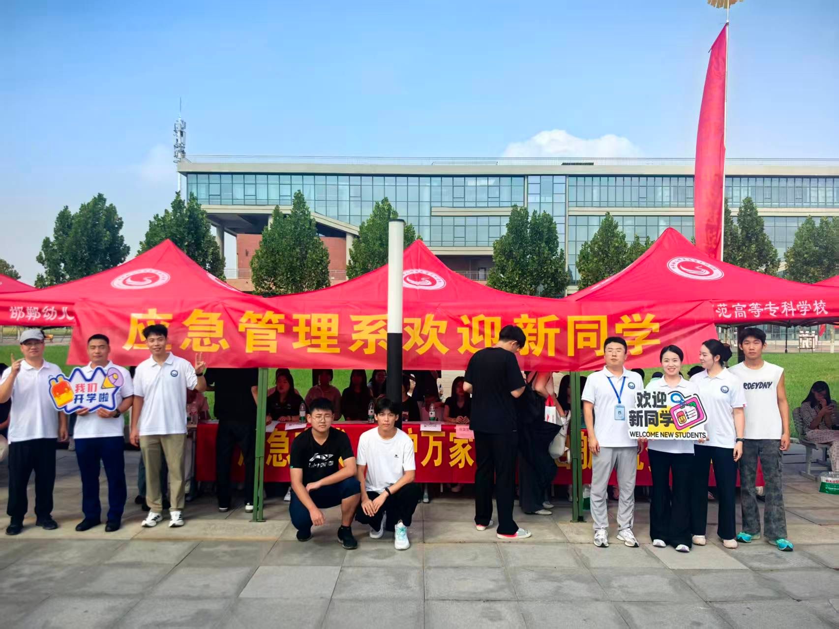 9月15日至16日,邯郸幼儿师范高等专科学校应急管理系迎来了196名新同学。系部专兼职干事7名全部投入迎新生工作。校党委书记万永彪、副书记 校长曹建召深入迎新一线,亲切慰问应急管理系新生,并与大家合影留念。