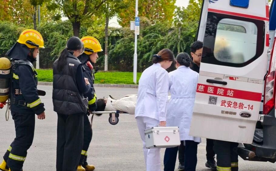 演练模拟真实火灾场景。上午10时,学生公寓2号楼现场“火”势迅猛、浓烟滚滚并触发火灾报警;公寓宿管员熟练地打开疏散门、上楼确认火情并报告至学校总监控室;总监控室迅疾报告至后勤保卫科,后勤保卫科立即启动《邯郸幼儿师范高等专科学校学生应急逃生演练工作方案》 。学生宿舍公寓2号楼楼宇内全体学生用湿毛巾捂住口鼻弯腰前行有序疏散。武安市消防救援大队灭火救援车辆迅速到场侦察火情、内攻搜救、排烟灭火,成功救出2名“被困”学生送往医疗救护区。周边宿舍管理员、辅导员迅速集结协助疏散,按照预定分工逐屋排查被困人员、清点人数,安抚学生情绪。急救车及时赶到救治“伤员”⋯⋯经过紧张“战斗”,826名学生全部安全撤离火场,“被困人员”全部获救,“火灾”被成功扑灭。
