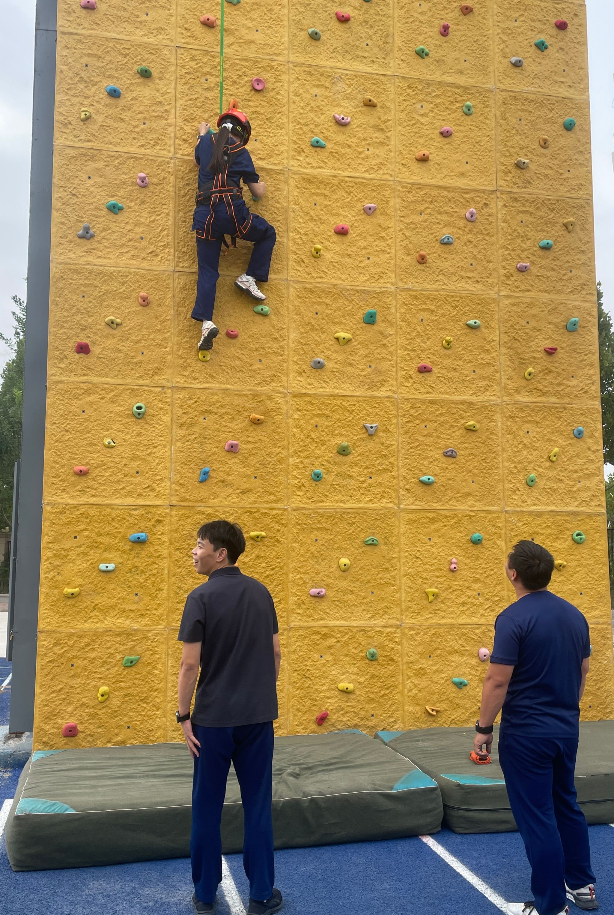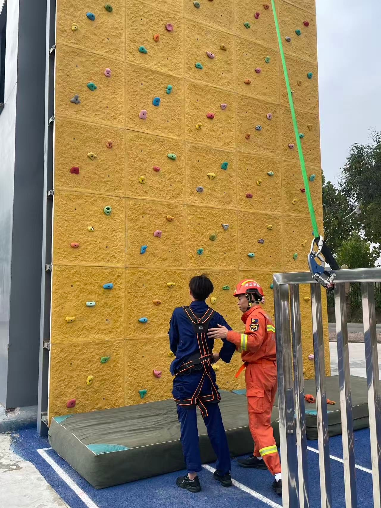 演练期间,在教师的专业指导下,新生们踊跃参与攀岩体验,纷纷挑战自我、展现勇气,现场学习氛围浓厚。