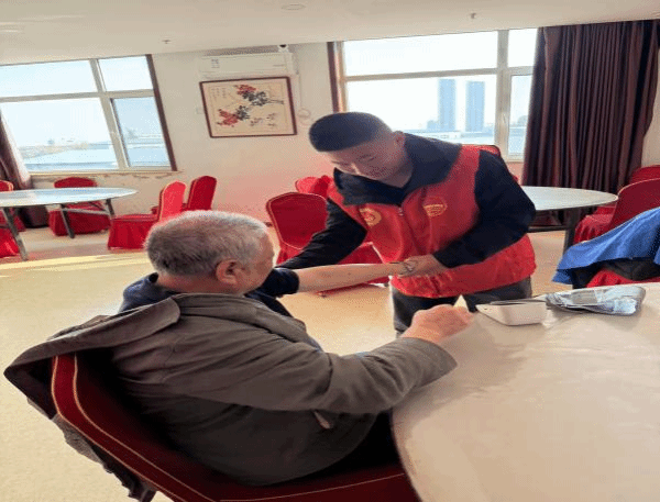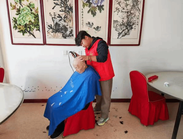 活动期间,志愿者们分组深入老人生活区,耐心陪伴聊天,倾听他们的故事与心声,并协助工作人员进行一些力所能及的生活照料,先后帮助工作人员整理老人房间、为老人理发、剪指甲、测量血压等。