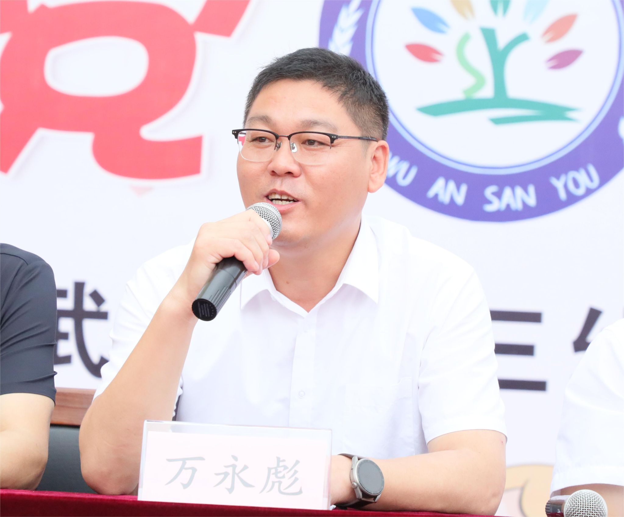 万永彪代表学校,向长期以来给予我校支持的武安市委市政府,向给予学校优秀校友所在的武安市第三幼儿园关爱支持的武安市教体局、古楼街表示衷心感谢。他指出,参加此次“童心向党 快乐成长”庆六一活动,欣赏孩子们“我的成长故事”作品展,感觉重回童心,重忆童真,重念童事,重梦童魂!祝福最亲爱的小朋友们六一国际节日快乐!祝愿小朋友们永葆童心、快乐至真,学有所进!