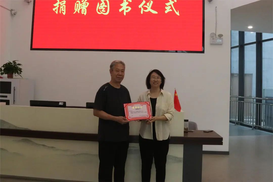 原邯郸学院武安分院副院长陈坦付带头捐献图书。