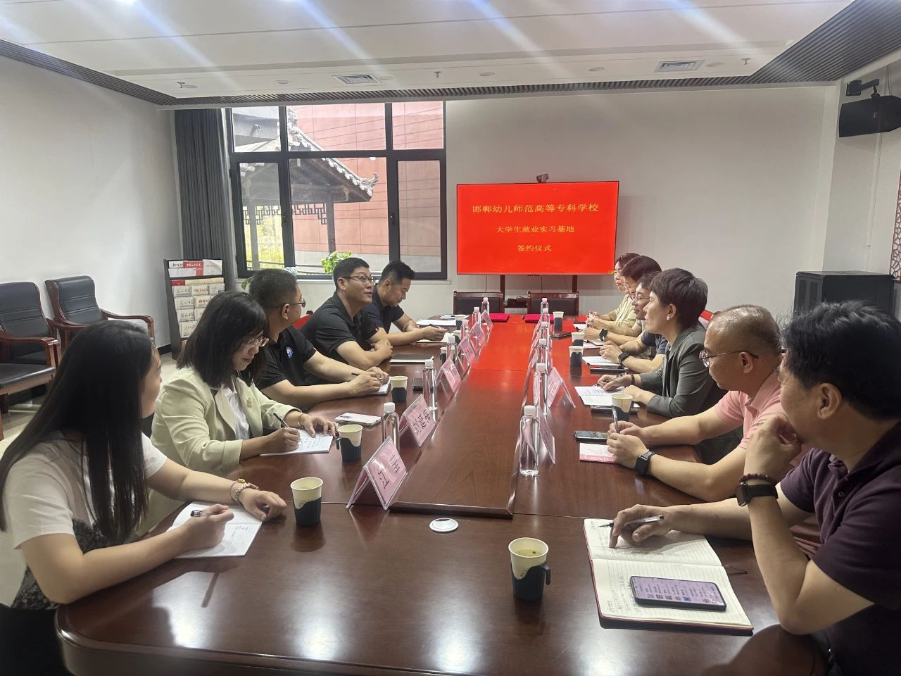 校企双方就加强校企合作,促进文化建设、学生实训及就业共同提升等进行座谈交流。现场还举行了大学生就业实习基地授牌仪式。