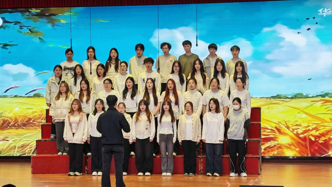 熟悉的旋律缓缓响起,《稻香》的温柔曲调在现场轻轻流淌。24康养4班同学们的歌声轻快柔和,质朴真挚,如春风拂过田野,勾勒宁静与美好的田园风光,仿佛让人置身乡间田野,怀念着童年的美好时光。