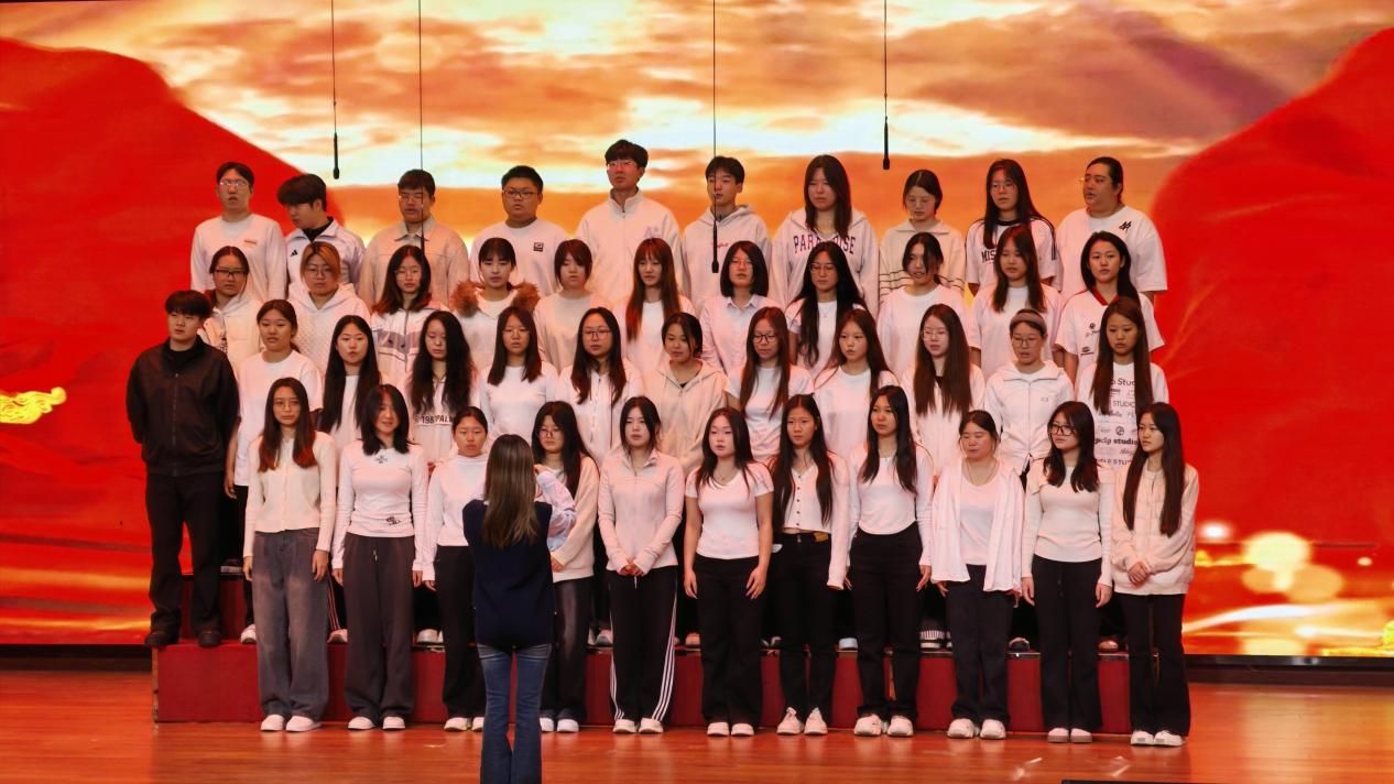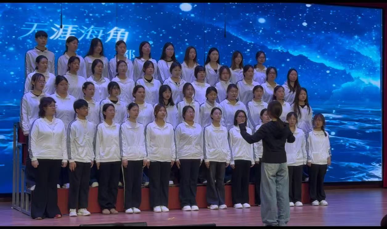 比赛现场激情洋溢,各支参赛队伍身着整齐服装,精神饱满,依次亮相舞台。同学们意气风发,用饱满的热情唱响时代的赞歌。他们用青春之声传递出对党、对国家、对时代的无限热爱。一曲曲经典旋律声声入耳,如《我和我的祖国》等爱国主义歌曲被深情传唱,表达出学子们真挚的爱国情感。