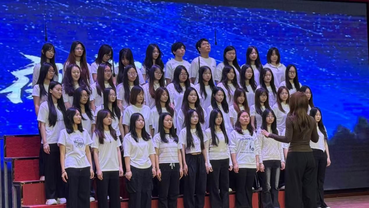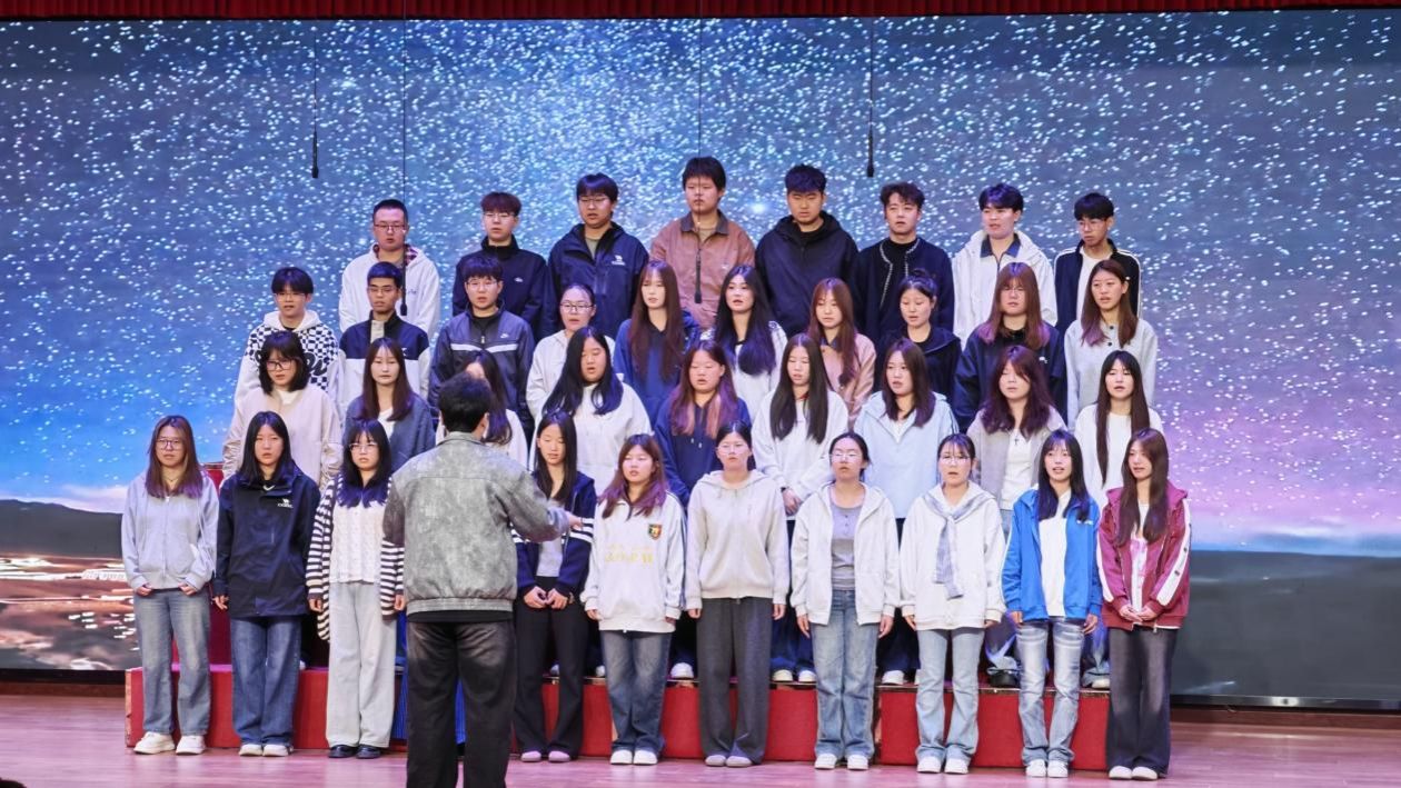 24心理2班的同学们带来的歌曲《夜空中最闪亮的星》。他们轻声合唱,歌声温柔清澈,像夜空中缓缓亮起的星光。那整齐又饱含情感的演唱,满含对未来的期许与勇气。让人感受到少年眼里的光和心中不变的信仰。