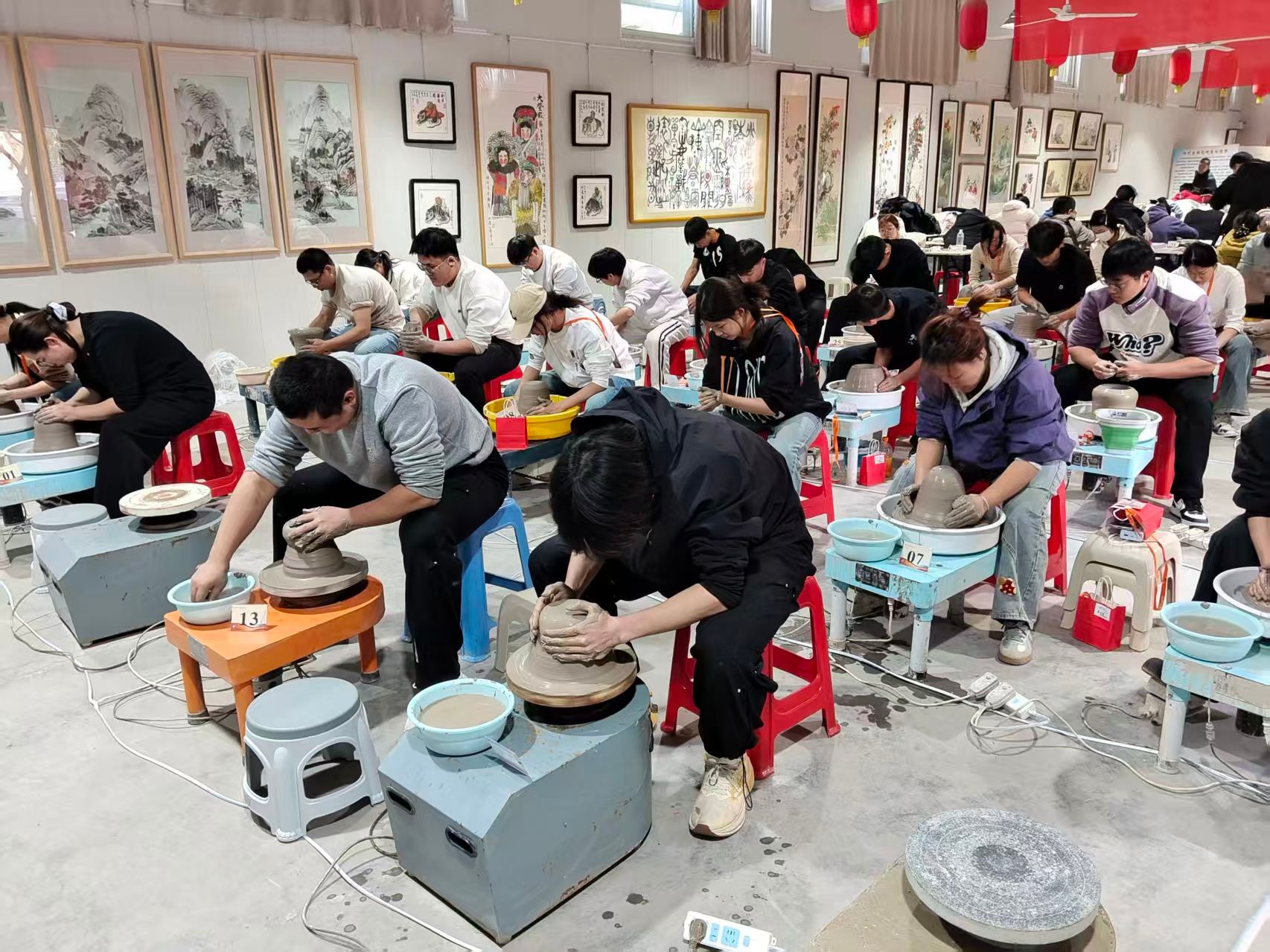 赛前,美术系依托学校陶瓷实训平台,组织专业教师对参赛选手进行系统化指导。从磁州窑原料加工、泥料制炼的基础工序,到手拉坯的转速把控、再到现代设计理念与传统工艺的融合创新,指导教师都一一亲手指导,师生们在窑火与泥土的对话中反复打磨技艺,使作品兼具古朴底蕴与时代活力。