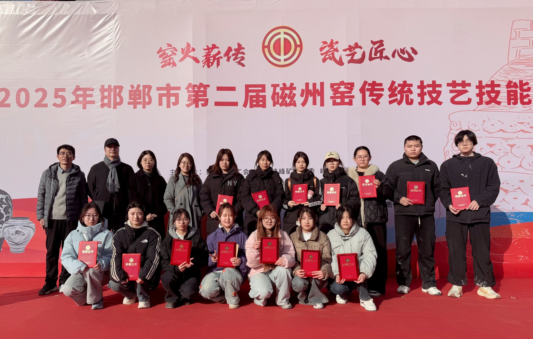 2025年11月27日,邯郸市第二届磁州窑传统技艺技能大赛在磁州窑富田遗址博物馆盛大开幕,美术系陶瓷设计与工艺专业学生凭借深厚的技艺积淀与大胆的创新思维,在艺术瓷组别手拉坯竞赛项目中获多个奖项,以邯幼青春之力为非物质文化遗产的传承与发展注入鲜活动能。
