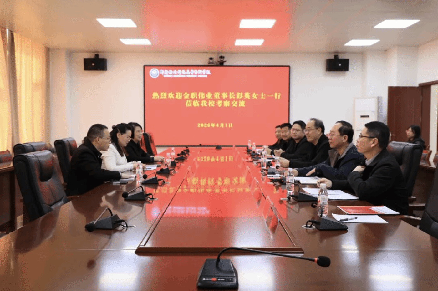 4月1日上午,全国婴幼儿照护服务行业产教融合共同体理事长、全国三八红旗手、金职伟业集团有限公司董事长彭英,金职伟业集团有限公司特聘专家谢玉琳,产教融合中心区域经理谢章保一行到校考察交流。我校党委副书记、校长曹建召陪同,党委委员、副校长丁万宁出席,教务科、招生就业科、早期教育系、学前教育系、健康服务系主要负责同志参加座谈会。