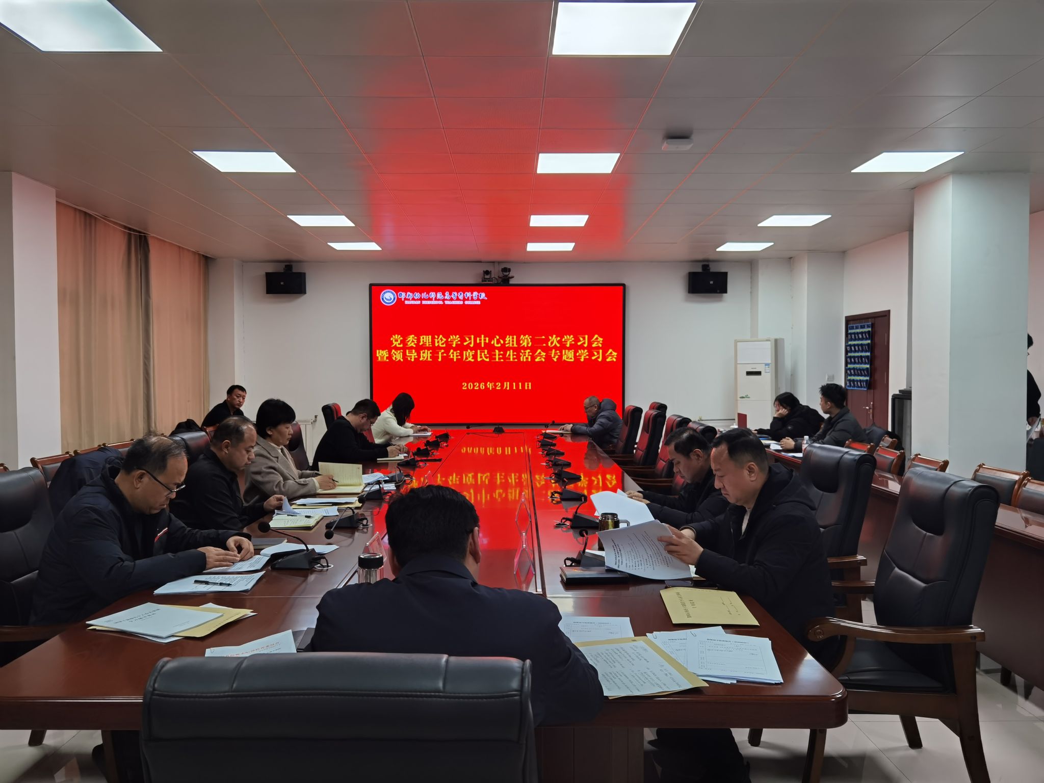 2月11日下午,我校在行政楼401会议室召开党委理论学习中心组第二次专题学习会暨领导班子年度民主生活会专题学习会,深入学习贯彻习近平总书记在中央政治局2025年度民主生活会上的重要讲话精神、在二十届中央纪委五次全会上的重要讲话精神,以及习近平总书记关于党的建设的重要思想、关于党的自我革命的重要思想,交流学习体会、深化思想认识,为学校领导班子2025年度民主生活会的召开筑牢思想根基。校党委书记万永彪主持学习会,校党委领导班子全体成员参加学习,党政办公室、组织人事部、党群工作部、纪委办公室相关负责同志列席会议。